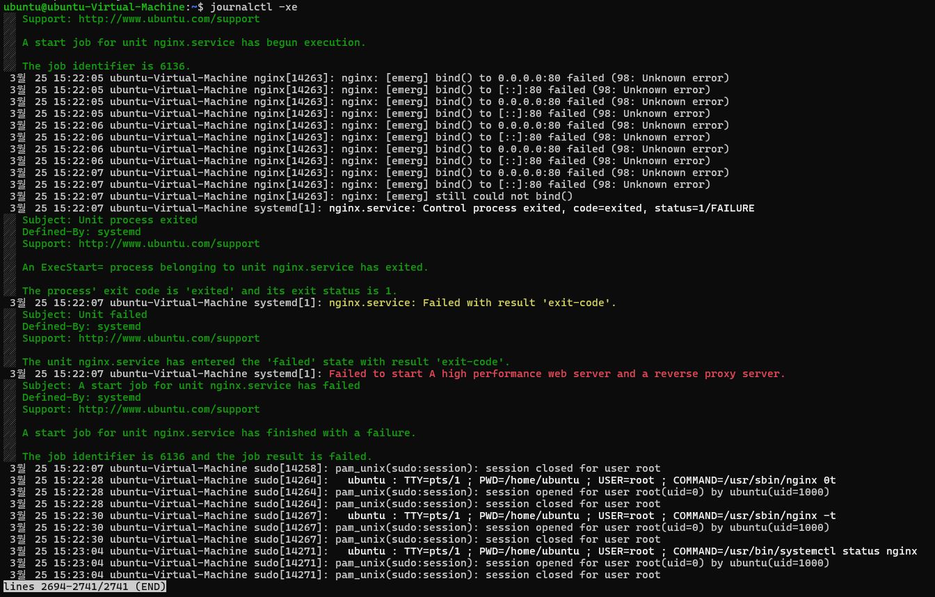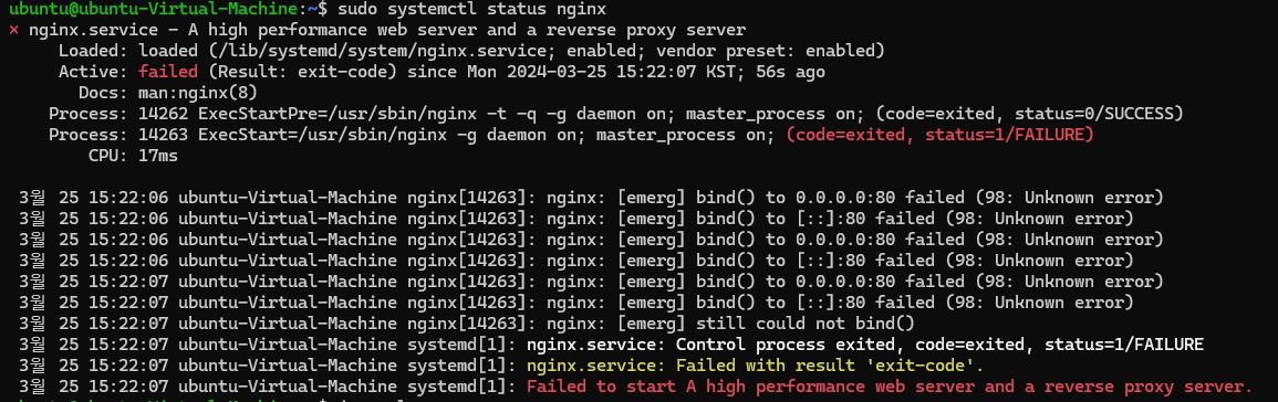 Ubuntu에 Nginx 설치하고 서비스 기동이 안됨