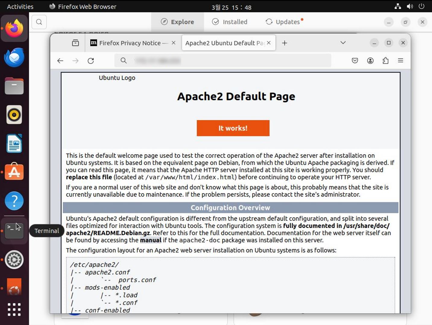 $ sudo lsof -i -P -n | grep LISTEN ↑ apache2가 자동으로 설치돼서 기동되고 있었던 것...