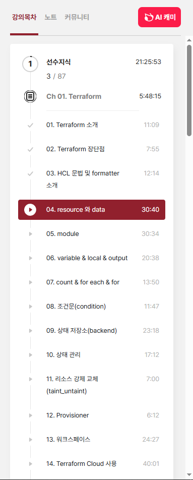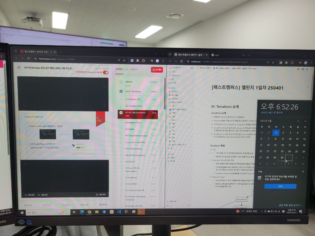 Terraform 강의를 들으면서 Infrastructure as Code(IaC)의 중요성과 자동화의 필요성을 다시 한번 깨닫게 되었다. 기존에는 클라우드 인프라를 구축할 때 수동으로 설정하고 관리하는 방식에 익숙했는데, Terraform을 활용하면 이를 코드로 관리할 수 있어 일관성과 효율성을 크게 높일 수 있다는 점이 인상적이었다.