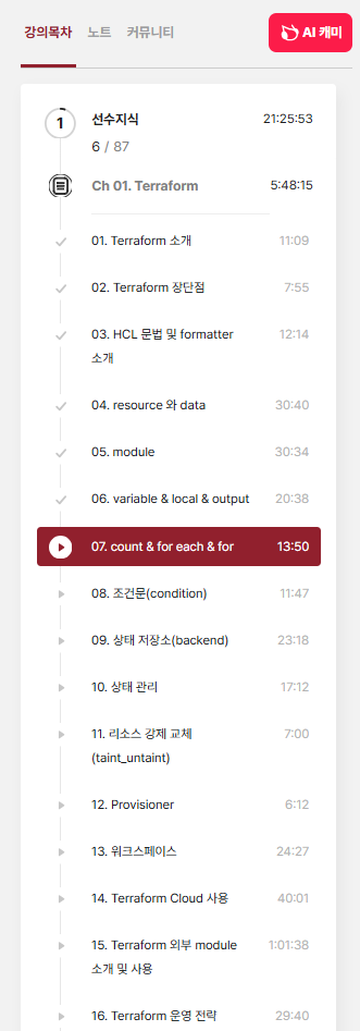 로컬 값(local)은 반복적으로 사용되는 표현식을 줄일 수 있는 개념이었다. 처음에는 단순히 변수와 뭐가 다른지 헷갈렸지만, 특정 값을 짧은 이름(alias)처럼 활용하는 데 유용하다는 점을 깨달았다. 특히 가용 영역(availability zone) 같은 값을 여러 번 쓰는 경우 local.tf에 한 번만 정의하고 필요할 때마다 참조하면 코드가 훨씬 간결해졌다.