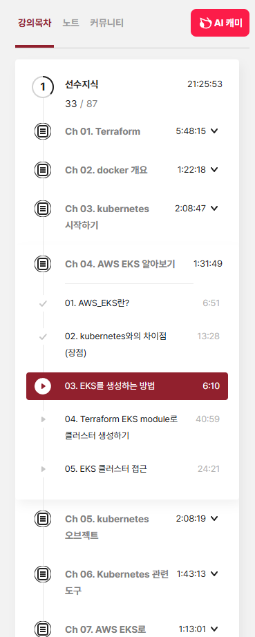 오늘 강의에서는 AWS EKS를 다뤄봤다. 강의를 듣기 전에는 단순히 “쿠버네티스를 AWS에서 쉽게 쓸 수 있다”는 정도로만 알고 있었는데, 구조나 실제 운영 측면에서 어떤 차이가 있는지 조금 더 자세히 살펴보니 생각보다 인프라 쪽 고민이 많이 줄어들 수 있겠다는 생각이 들게 됐던 강의였다.